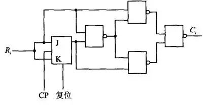 对于转换速度不高的,可采用下图所示的串行转换器。它是由与非门组成的不进位加法器和 JK 触发器构成。